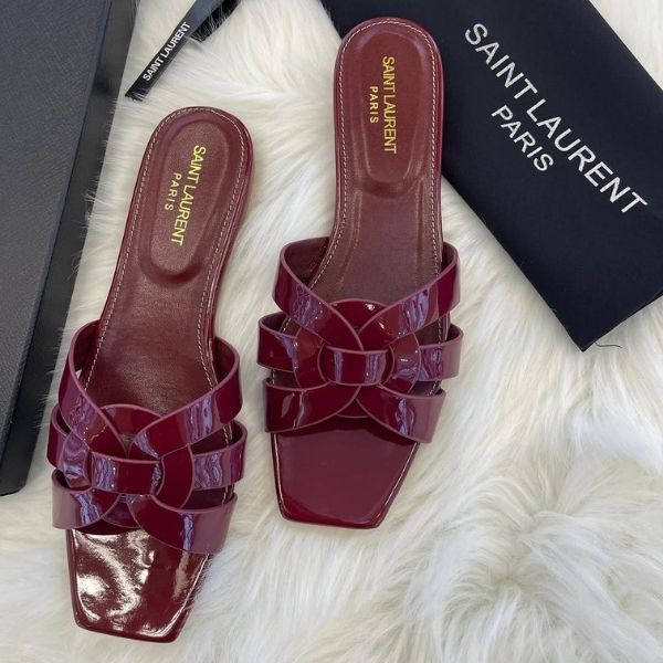 Saint Laurent Tribute Comfort Sandals Slide Flats Maroon Glossy