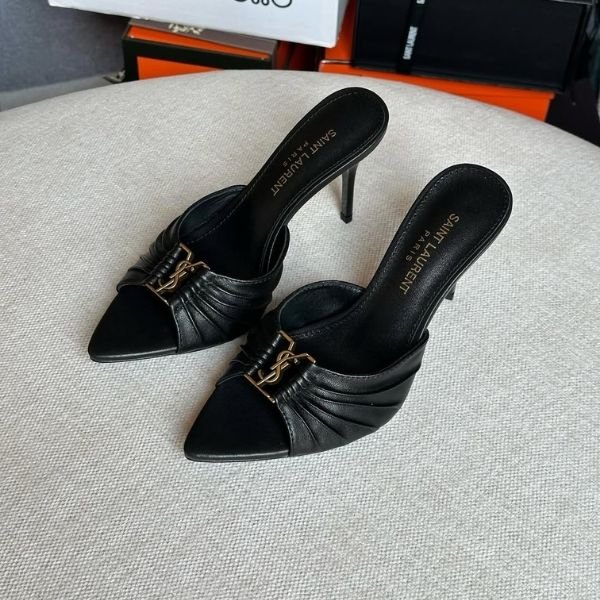 Yves Saint Laurent Babylone 90 Sandals High Heels Pointed Toe Sandals Mules Black