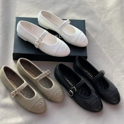 Chanel Lambskin & Patent Calfskin Ballet Flats Shoes Slip-Ons Sandals Beige Black