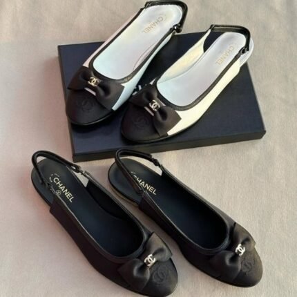 Chanel Interlocking CC Logo Slingback Ballet Flats Sandals Black