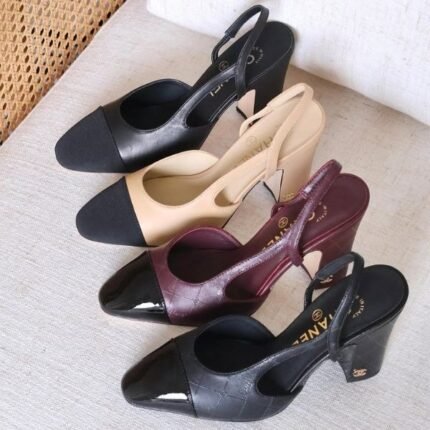 Chanel Goatskin Grosgrain Cap Toe CC Slingback Heels Pumps 39.5 Black Denim