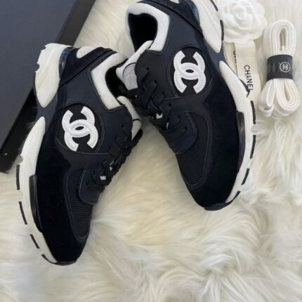 Chanel Suede Woven CC Low Top Sneakers Trainers Casual Shoes Black
