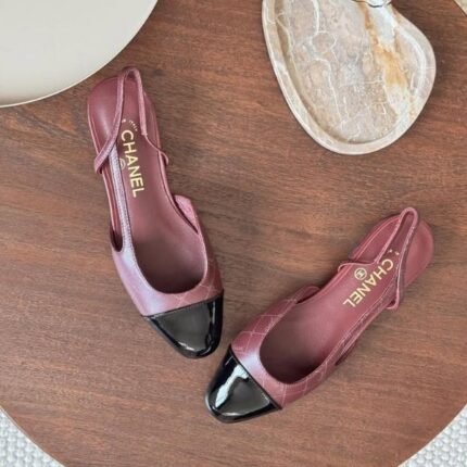 Chanel Tweed Slingback Pumps Heels Sandals 65 Printed Lambskin Patent Leather Burgundy Black