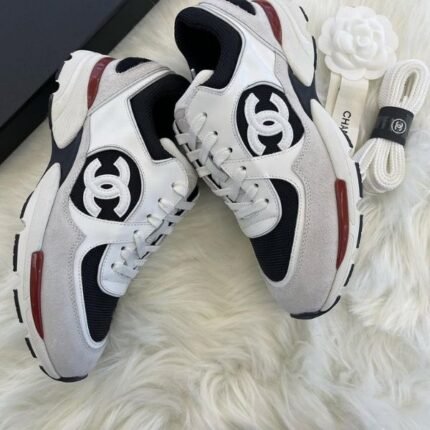 Chanel Suede Woven CC Low Top Sneakers Trainers Casual Shoes White Gray Black