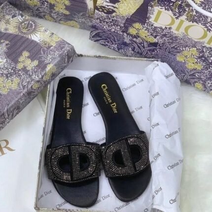 Christian Dior Crystal Embellished Sabot Flat Slip-Ons Slides D-club Black