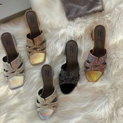 Gina Metallic Leather Crystal Embellished Roma Heels Sandals Mules 35 Black