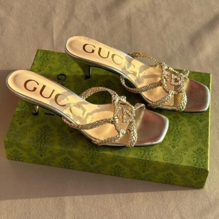 Gucci Crystal Woven Interlocking GG Sandals Slip-Ons Heels Silver