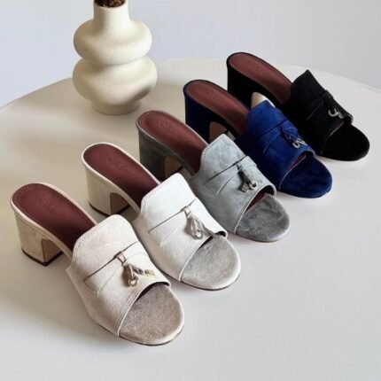 Loro Piana Women’s Suede Charm Heels Sandals Shoes Tan