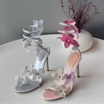 René Caovilla 105mm Cleo Sandals High Heels Silver Floral